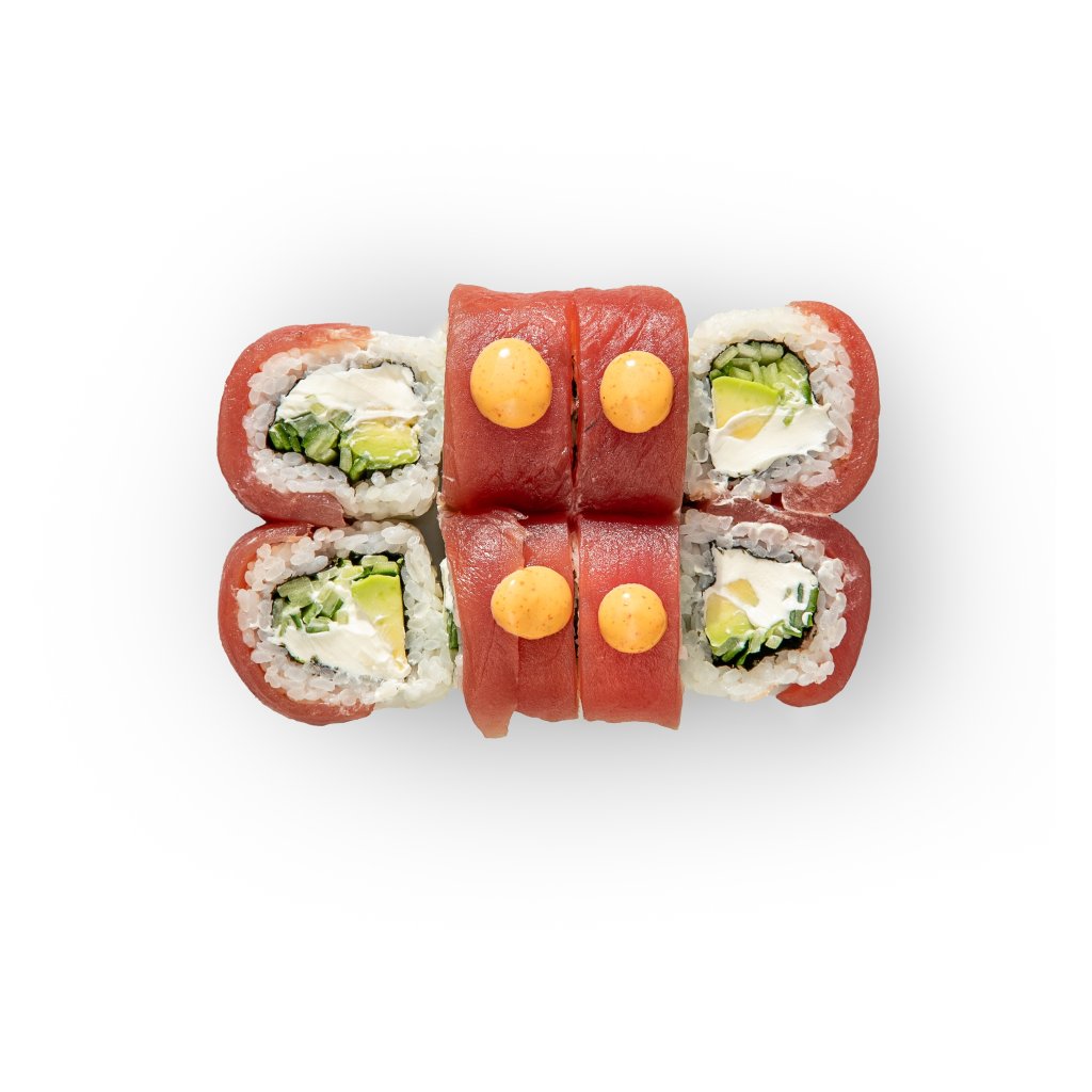 Lahodný krémový sýr Philadelphia, okurka, avokádo, tuňák, spicy omáčka